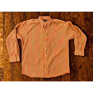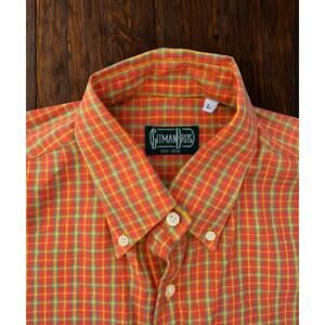 Gitman Bros Vintage Flannel Collar Shirt L Orange Plaid Made in USA EUC