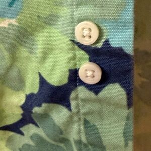 Condition: Missing one button (included two extra replacement buttons). Otherwise, the shirt is in excellent condition with vibrant colors and no damage.