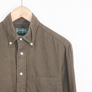Gitman Bros Vintage Men's Flannel Shirt Olive Brown Cotton size Small