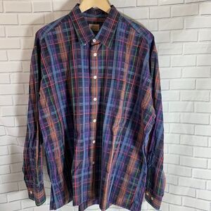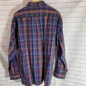 This is a really well made shirt, no tags but unworn. The plaid is laser sharp. with almost every color and shade in the rainbow included. Measures 17" in the neck, laid flat it measures 28" across, and 30" in length, so it's generously sized.In very good pre-owned condition, no flaws or damage. Please review pictures and feel free to ask any questions or for more pictures prior to purchasing.