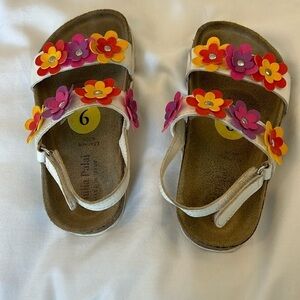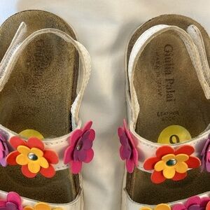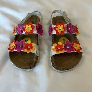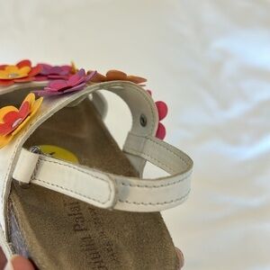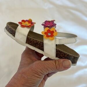 Girls Floral Velcro Colorful Sandals by Giulia Palai. Made in Italy. White with colorful embellished flowers. Cork footbed. Size 9(Toddler Girls)