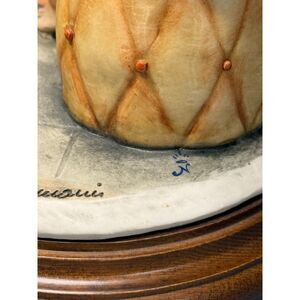 Hand-painted in Italy for the Florence Collection, this sculpture showcases Armani’s signature expressive faces, softly shaded clothing, and beautifully textured details. The piece rests on its original wooden base with both metal maker’s tags intact: the script G. Armani plaque and the Made in Italy label.