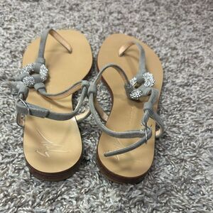 (T) Giuseppe Zanotti Italian Designer Gray Suede & Leather Sandals With Silver Sparkly Embellishment, Size 36 European or us 6 US
