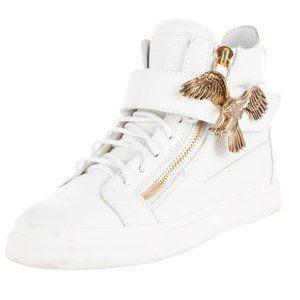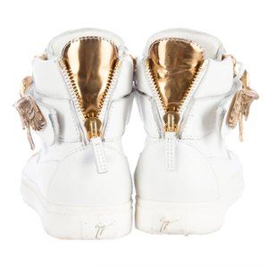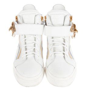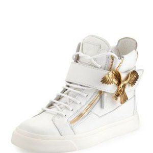 Rare Zanotti high-top white and gold sneakers with metal gold eagle detail!