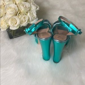 Giuseppe Zannoti Metallic Green, platform heels. Size 41 excellent condition, minor discoloration on sole of shoe. Comes with box, dust bag. Two tone green on shoe is exceptional!