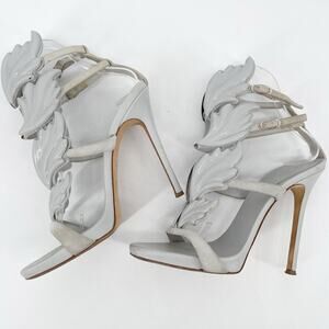 Giuseppe Zanotti 37.5 Gray Suede Coline Cruel Wing Flame Heel High Sandal Heels