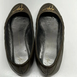 Giuseppe Zanotti Ballet Flats Slip On Shoes Quilted Leather Gold Logo Size 7.5