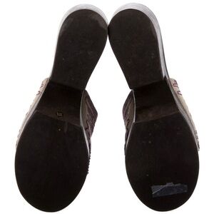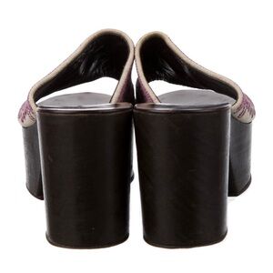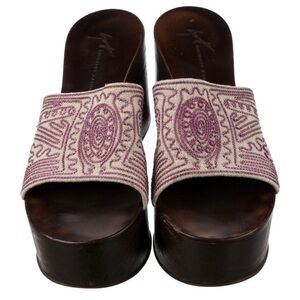 Giuseppe Zanotti Beige Canvas Embroidered Chunky Platform Sandal Slides Sz 37.5