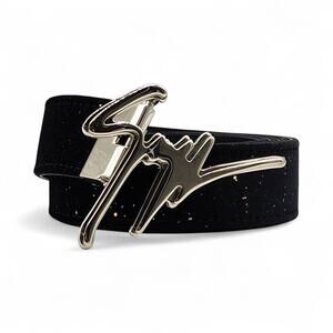 Giuseppe Zanotti Black Glitter Belt with Signature Logo Buckle – Men’s / Unisex