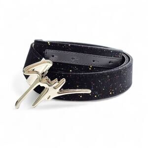 Giuseppe Zanotti Black Glitter with Signature Logo Buckle Unisex Belt - NIB