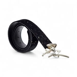 * Style: Black Glitter Belt with Signature Logo Buckle