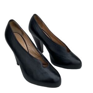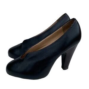 Giuseppe Zanotti Black Leather Pumps Cone Heel Almond Toe Made in Italy Size 37 US 7 Designer Career