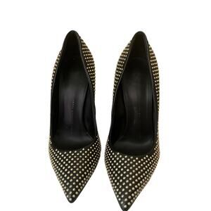 Giuseppe Zanotti Black Leather Gold Studded Pointed Toe Pumps Size 36.5
