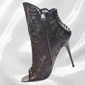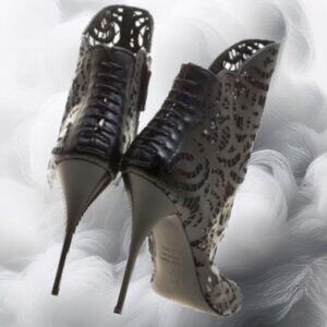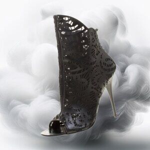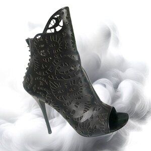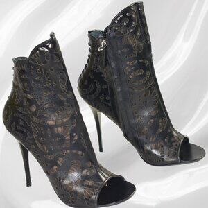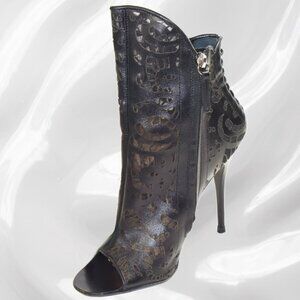 Giuseppe Zanotti Black Leather Laser Cut Open Toe Stiletto Ankle Boot, 3…