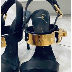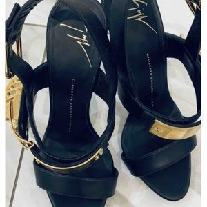Giuseppe Zanotti Black Leather Strappy Ski Buckle Embellished Sandals