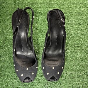 Giuseppe Zanotti Black Polka Dots Peep Toe Slingback Platform High Heels 38.5