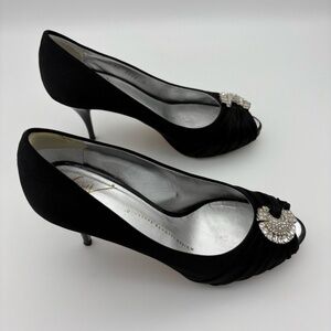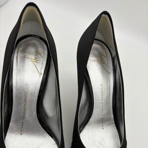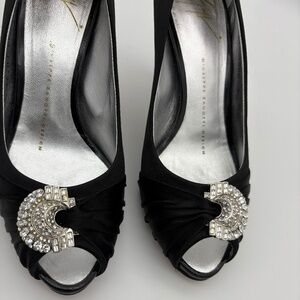Giuseppe Zanotti Black Satin/Crystal Peep Toe High Heel; Size 37 (US 6.5)
