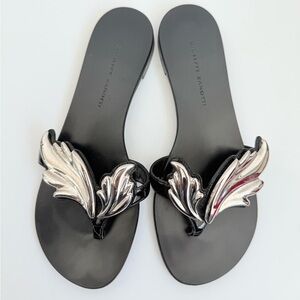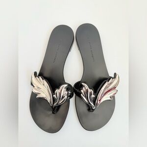 Giuseppe Zanotti Black Silver Cruel Wing flat thong sandals EU 37.5