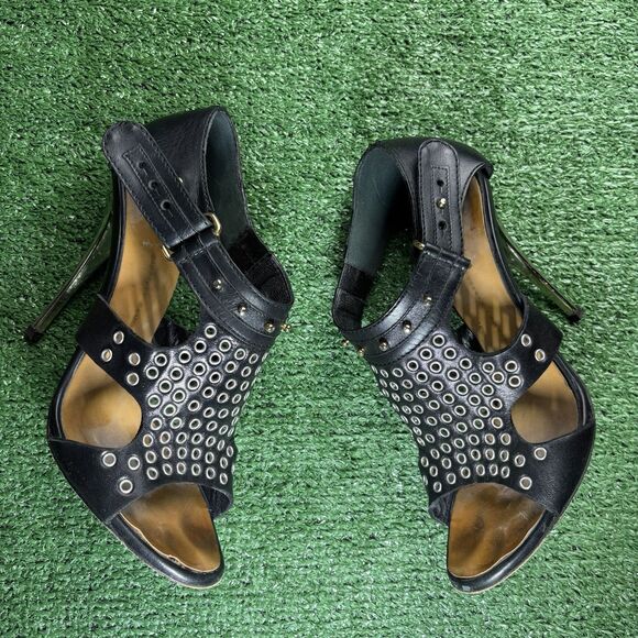 Giuseppe Zanotti Black Studs Peep Toe Slingback Platform High Heels 38.5
