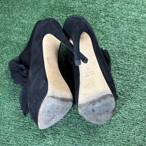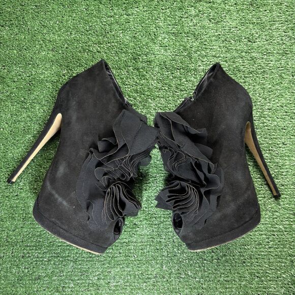 Giuseppe Zanotti Black Suede Frill Peep Toe Ankle Boots High Heels Size 37 US 7