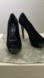 Elegant black suede heels by Giuseppe Zanotti. Features a sophisticated peep toe design. Perfect for any stylish occasion.
