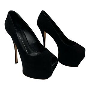 Giuseppe Zanotti Black Suede Peep Toe Platform Pumps Size 38.5 US 8.5 pre-owned good condition Black Suede
