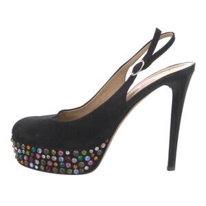 Giuseppe Zanotti Black Suede Platform Stiletto Slingback Rhinestones EU 40.5