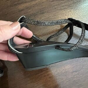 Giuseppe Zanotti Black Thong Swarovski Crystals Wedge Sandals Size 37/US 7