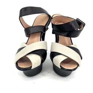 Giuseppe Zanotti Black White Stiletto Slingback Platform Sandals EU38.5 US8.