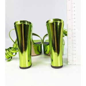 40 mm platform covered in lime green laminated leather