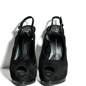 Giuseppe Zanotti Blk Suede Snakeskin High Heel Peeptoe Slingback Pump Sz 8.5