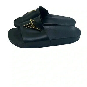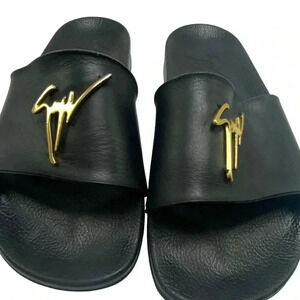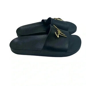 Giuseppe Zanotti Brett black leather Slide Sandal With gold Logo size 42