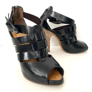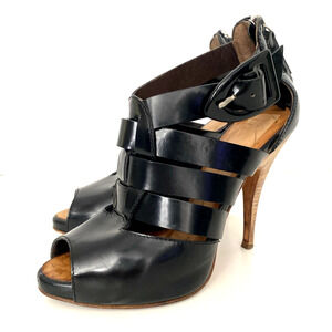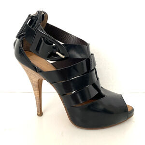 Giuseppe Zanotti Caged Sandal Black Peep Toe Slim Heel Back Zip Ankle St…
