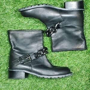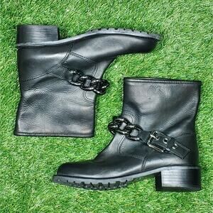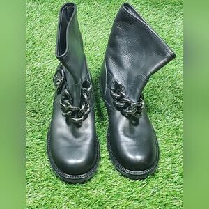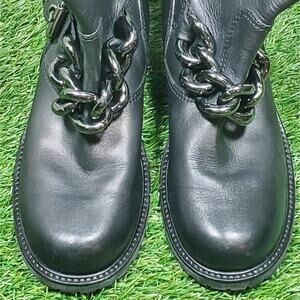 Giuseppe Zanotti Chunky Chain Biker Boot Black Leather Sz 38.5 (8) tag says 39