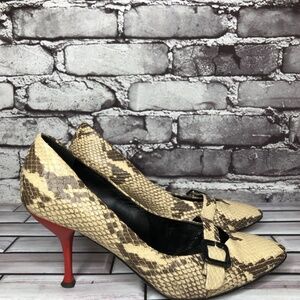 Invest in these Italian pumps, Giuseppe Zanotti Cream / Black Leather SnakeSkin Pointed Strap Heels Women