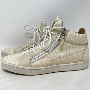 Giuseppe Zanotti Cream Python Embossed Leather Double Zip High Top Sneakers 40.