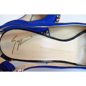 Giuseppe Zanotti Design Blue Suede Peep Toe Bejeweled Platform Heels, Size 9 US