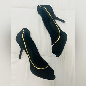Giuseppe Zanotti Designer Womens Open Toe Pumps With Gold Accent Size US 10/IT40