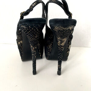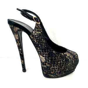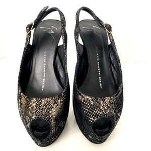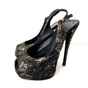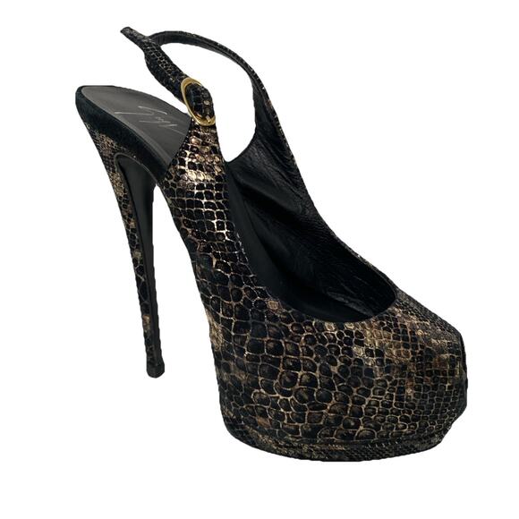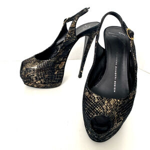 Giuseppe Zanotti Embossed Snakeskin Platform Pump Slingback Gold Black Peep 35