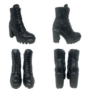 Giuseppe Zanotti Gintonic Black Snake Embossed Leather Combat Platform Boots Size 37.5 US 7.5, Luxury, Y2K, Grunge Revival, Cyberpunk, Gothic, Streetwear