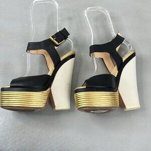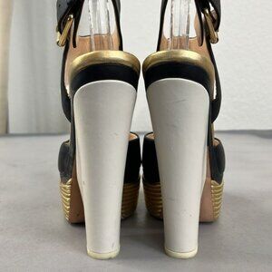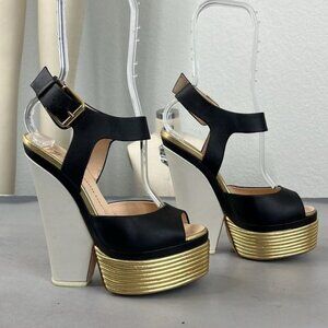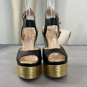 Giuseppe Zanotti Gold Black Leather Peep Toe Platform Sandals Pumps