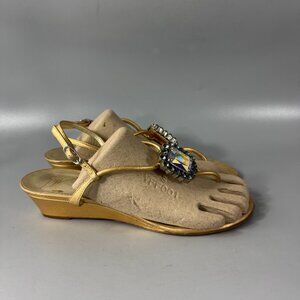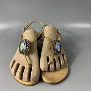 Giuseppe Zanotti Gold-tone Leather with Crystal Jewel Sandal, Size 40