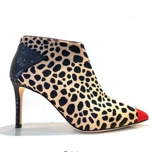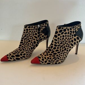 Giuseppe Zanotti Heeled Boots Leopard Animal print Red Pointed Toe Zip NWOB