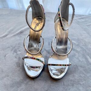 Giuseppe Zanotti Silver high heel sandals with multicolor gems