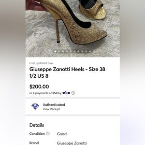 Giuseppe Zanotti Heels - Size 38 1/2 US 8 - crackled gold - pre owned - excellent condition - no box or dust bag