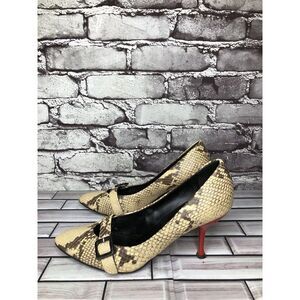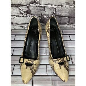 Giuseppe Zanotti Ivory Cream SnakeSkin Leather Pointed Strap Heels Women Sz 37EU