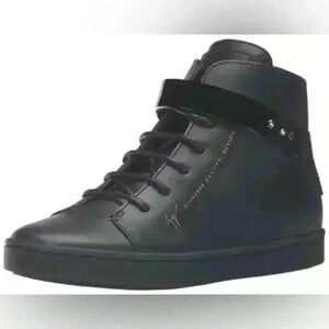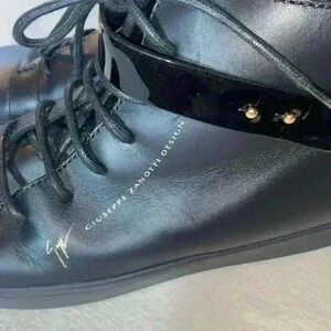 Giuseppe Zanotti James high top black patent strap leather sneakers. EU size 38. (US size 7.5). In excellent pre loved condition. Slight signs of wear on interior sole & small ding on leather by zipper of left shoe (see last photo)