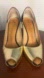 Beautiful Gold-tone metallic leather Giuseppe Zanotti peep-toe pumps with tonal stitching throughout, black leather counters and covered heels.