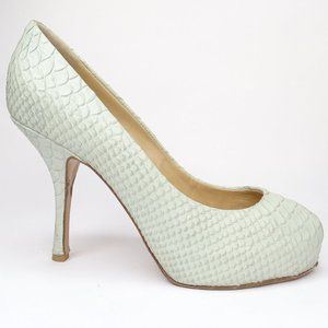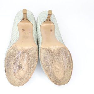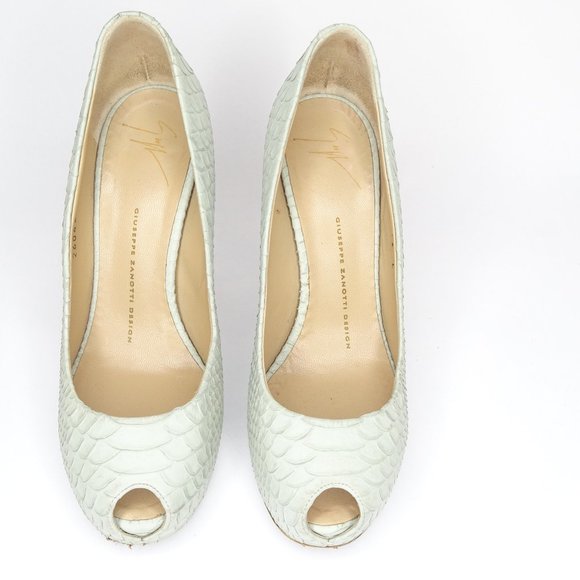 Giuseppe Zanotti Design Women's Leather Snakeskin Peep Toe Pumps Green Sz EU 37.5