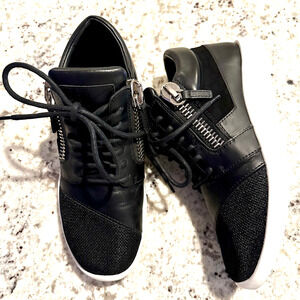 Giuseppe Zanotti's shoes epitomize the synthesis of creative design and impeccable Italian craftsmanship. Classic zipper closures on both sides and they also have lace-up closure gives it that edgy vibe